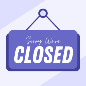We will be back Tuesday for our regular hours.