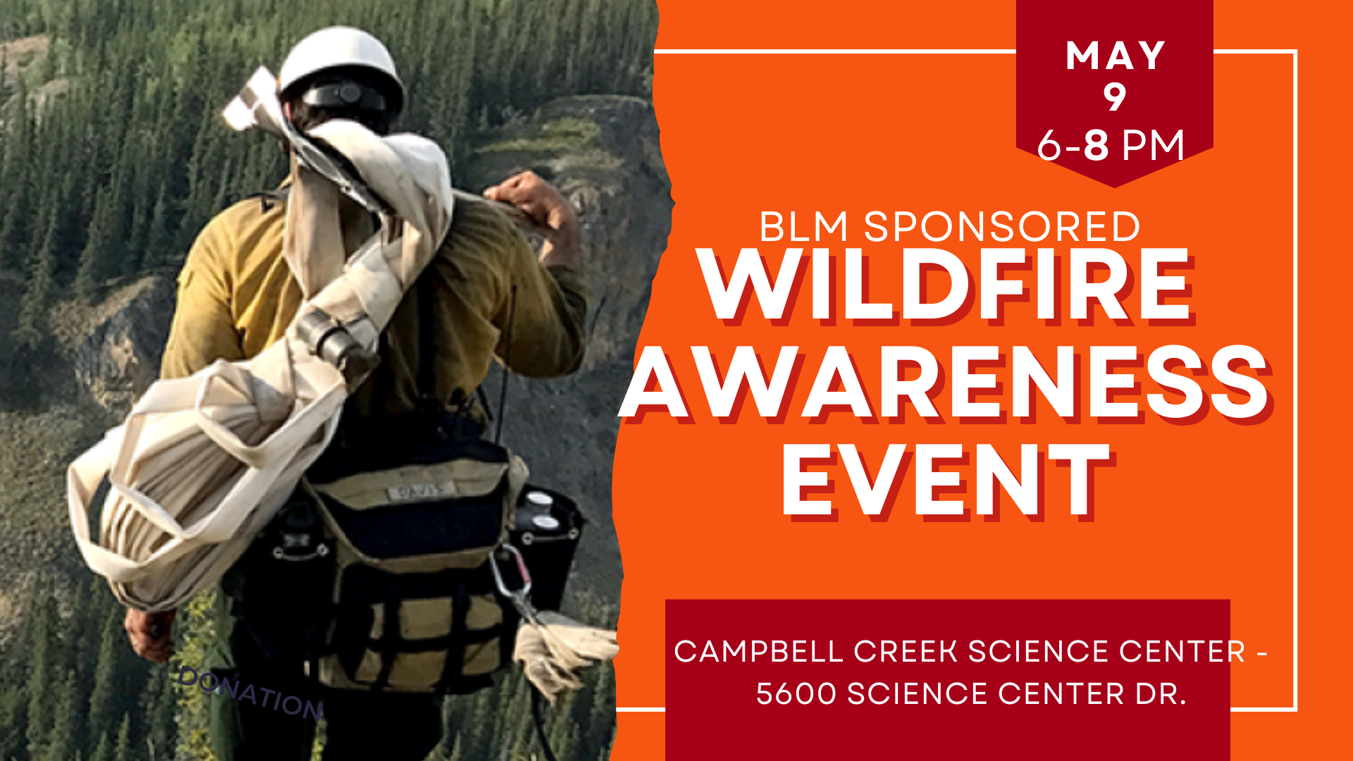 - Visit our table at the BLM Wildfire Resource and Awareness event we are supporting this year May 9th at the Campbell Creek Science Center from 6-8 PM. All of the area wildfire response organizations will be attending. Its a great event for families and kids to see the big rigs and learn about Ready-Set-Go and how to sign up or do a self Firewise inspection of your home. Event Flyer
